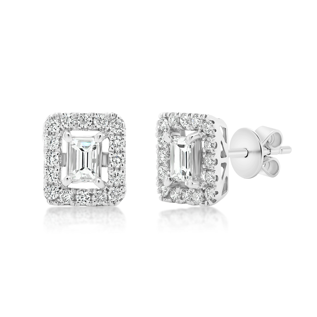 Cercei din aur alb de 18K cu Diamante naturale Baguette și Brilliant cut.