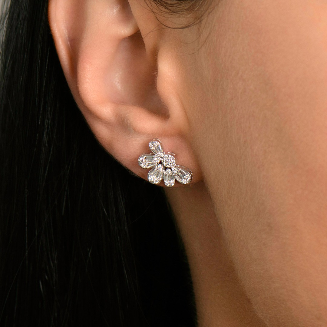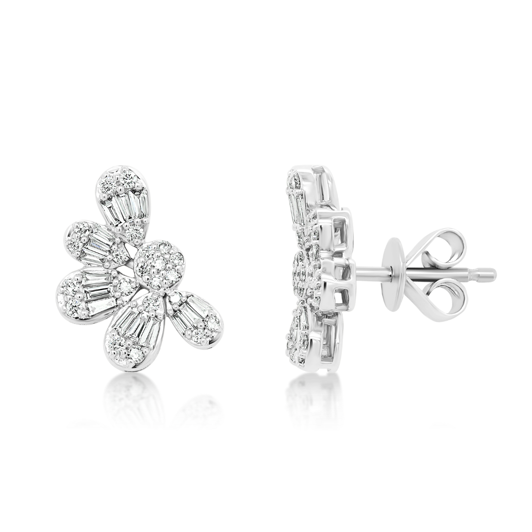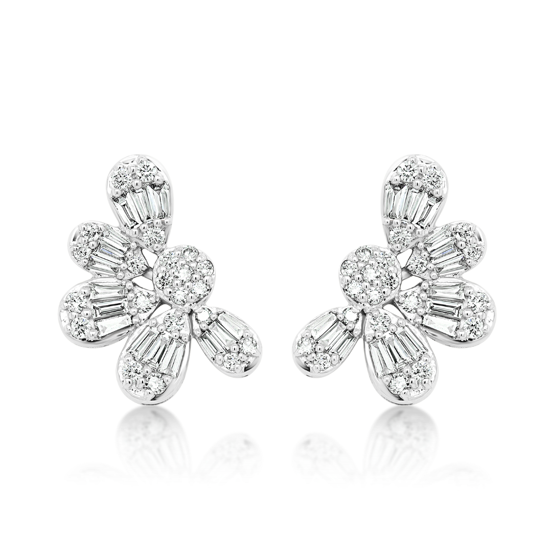 Cercei din aur alb de 18K încrustați cu 44 de Diamante round brilliant de 0.275ct și 30 de Diamante tapered baguette de 0.309ct.