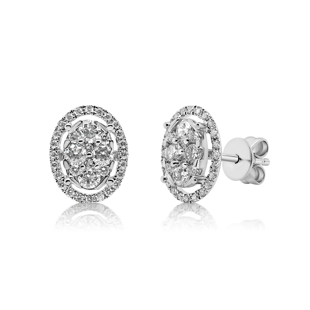 Cercei din aur alb de 18K, cu 68 de Diamante naturale Round Brilliant de 0.580ct.