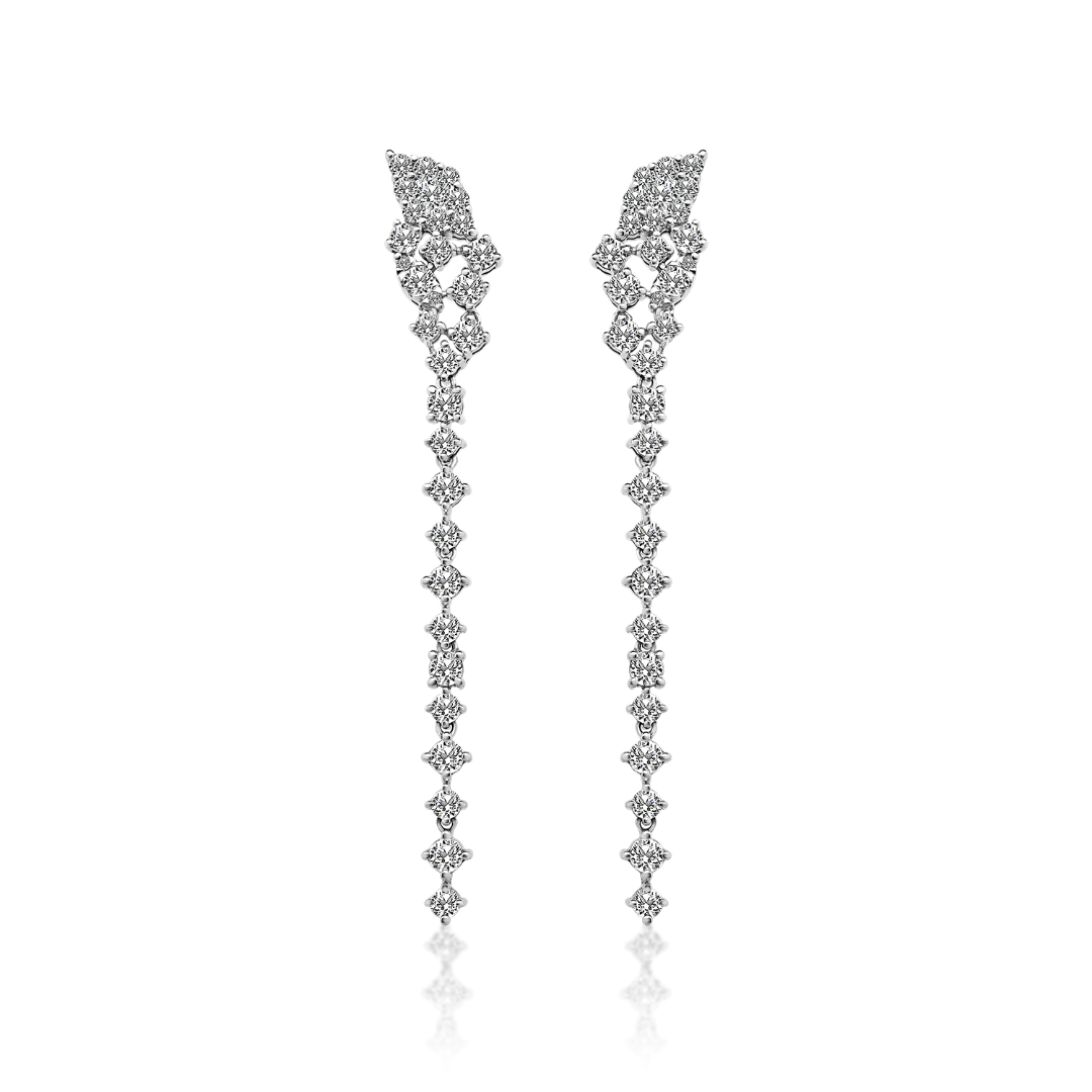 Cercei din aur alb de 18K încrustați cu 62 de Diamante naturale Round Brilliant cu o greutate totală de 3.06ct.