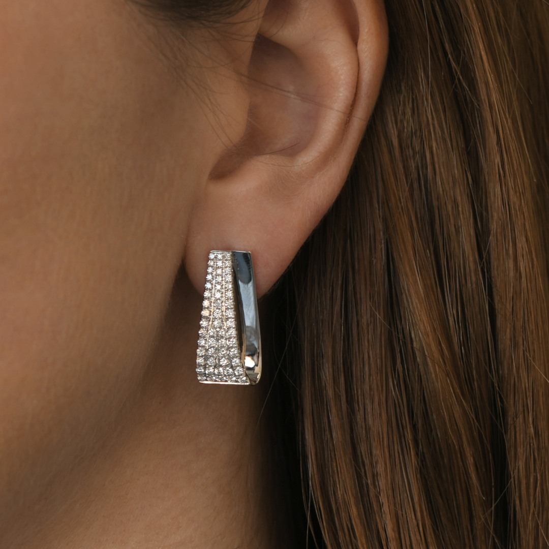 Cercei din aur alb de 18K cu 106 Diamante naturale Round Brilliant de 0.841ct.