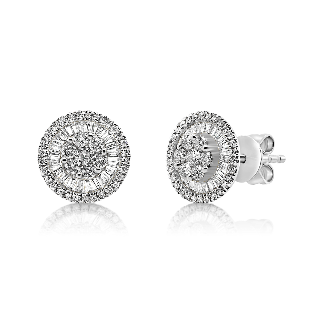 Cercei din aur alb de 18K cu Diamante Baguette și Diamante Round Brilliant, naturale.