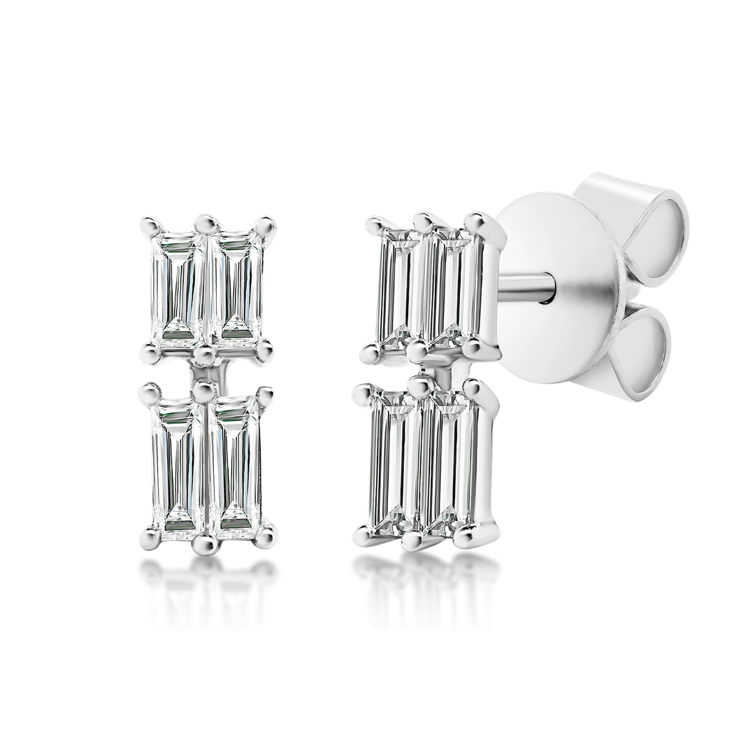 Cercei din aur alb de 18K încrustați cu 8 Diamante naturale Baguette de 0.39ct.
