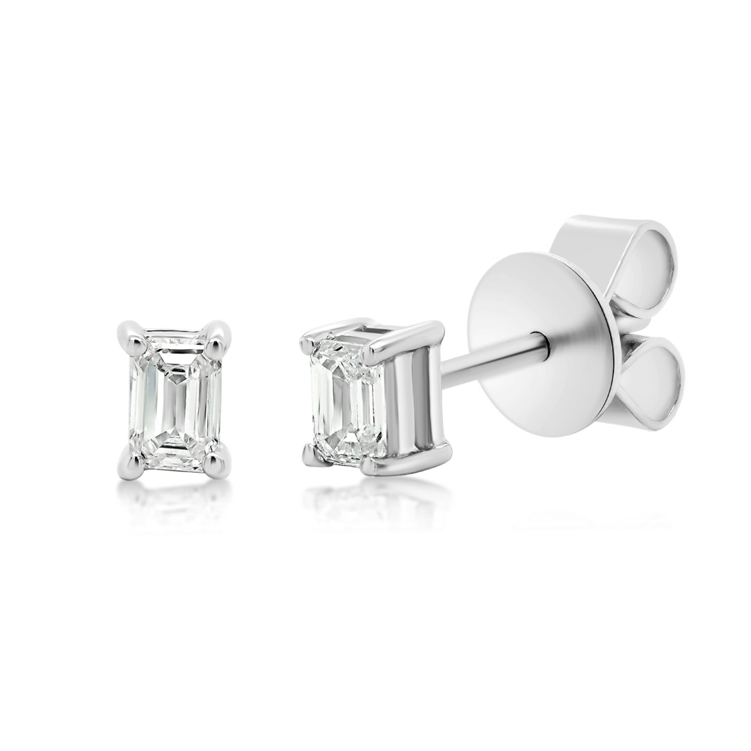 Cercei din aur alb de 18K încrustați cu două Diamante naturale Emerald Cut.