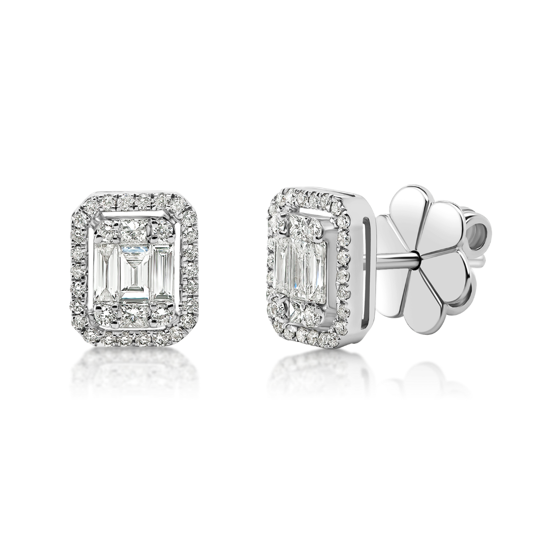 Cercei din aur alb de 18K încrustați cu 6 Diamante Baguette de 0.34ct., 4 Diamante Princess de 0.11ct. și 60 de diamante Round Brilliant de 0.27ct.