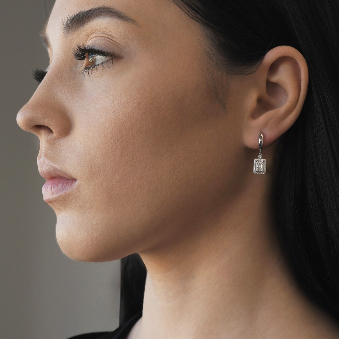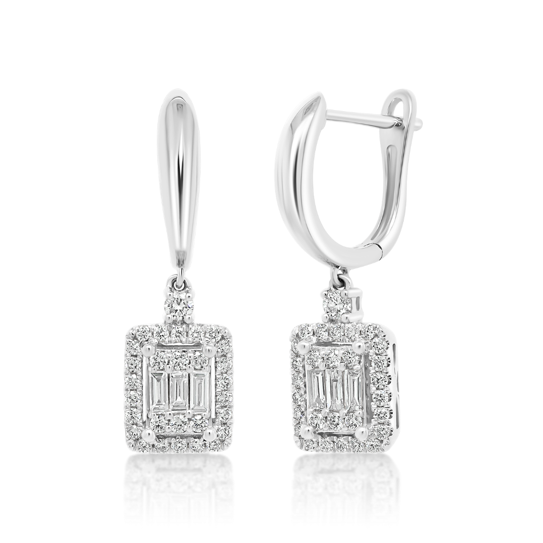 Cercei din aur alb de 18K cu Diamante naturale Baguette și Brilliant cut.