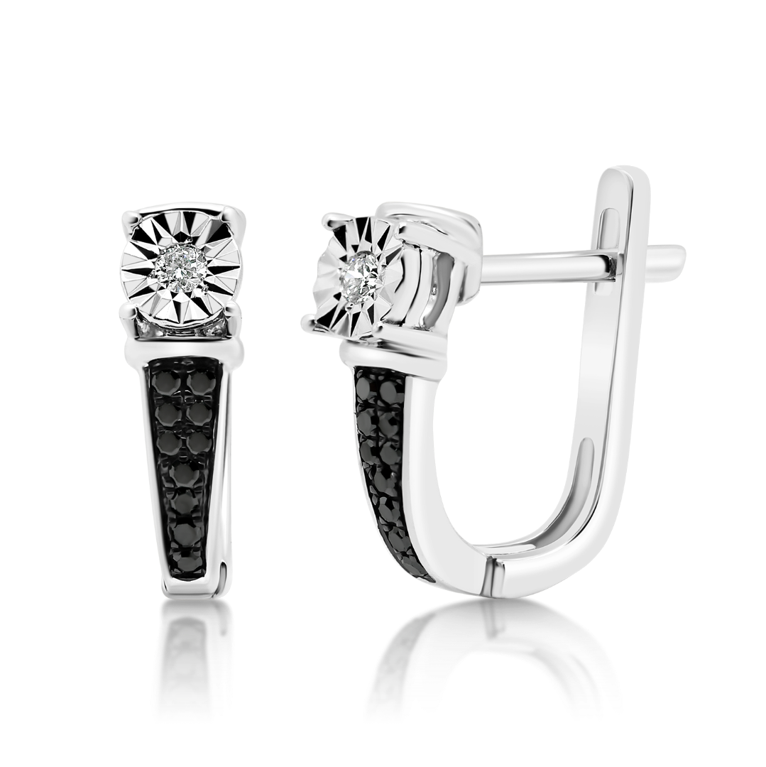 Cercei din aur alb de 18K cu Diamante naturale negre și incolore.
