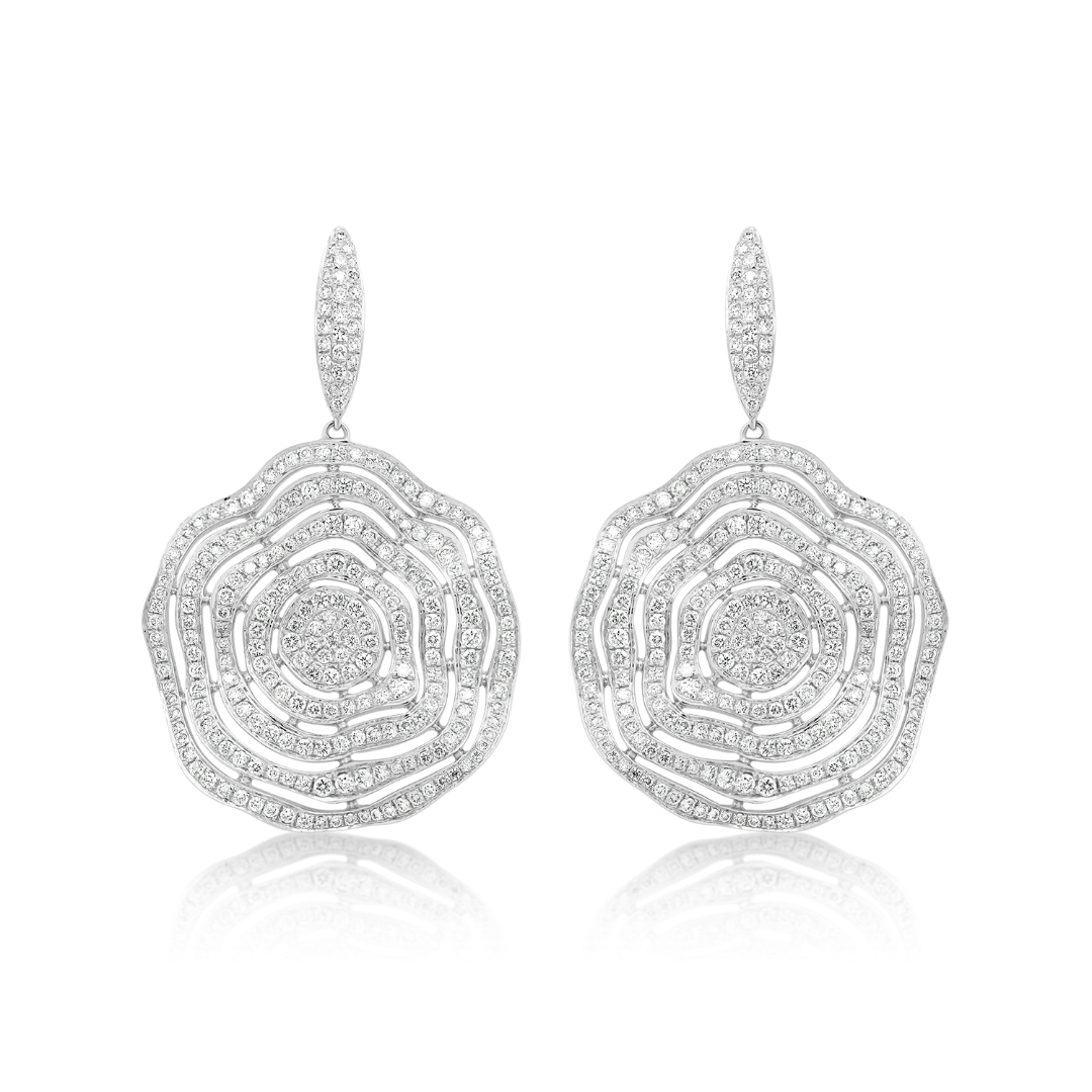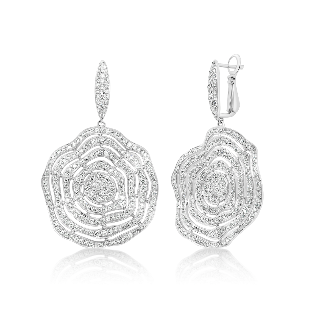 Cercei din aur alb de 18K încrustați cu Diamante naturale Round Brilliant de 3.71ct.