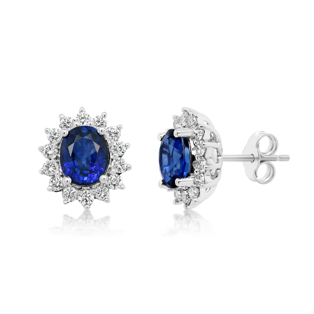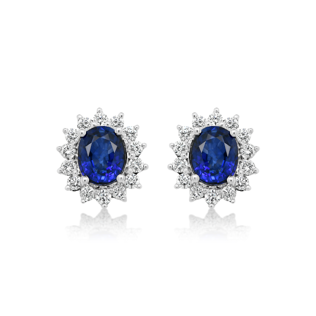 Cercei din aur alb de 18K cu Diamante naturale și Safire certificate AIG