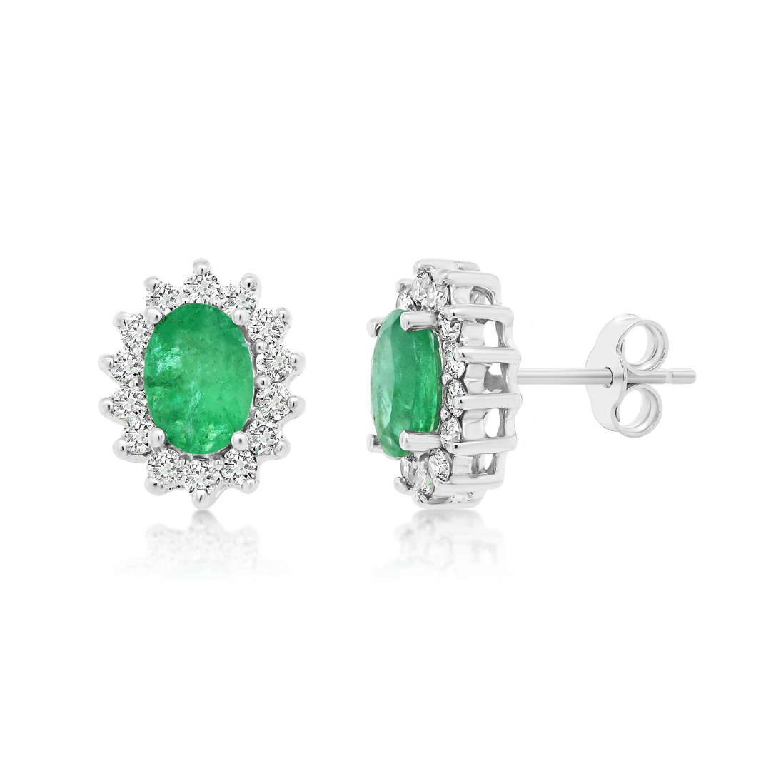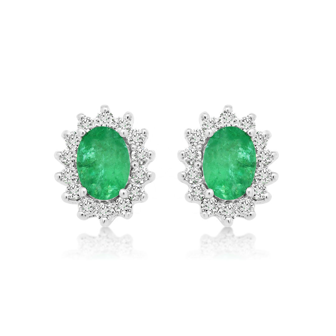 Cercei din aur alb de 18K cu Smaralde și Diamante naturale