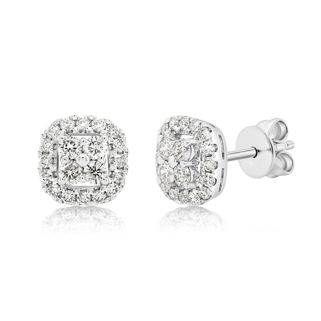 Cercei din aur alb de 18K cu 40 de Diamante naturale Round Brilliant cu o greutate totală de 0.60ct.