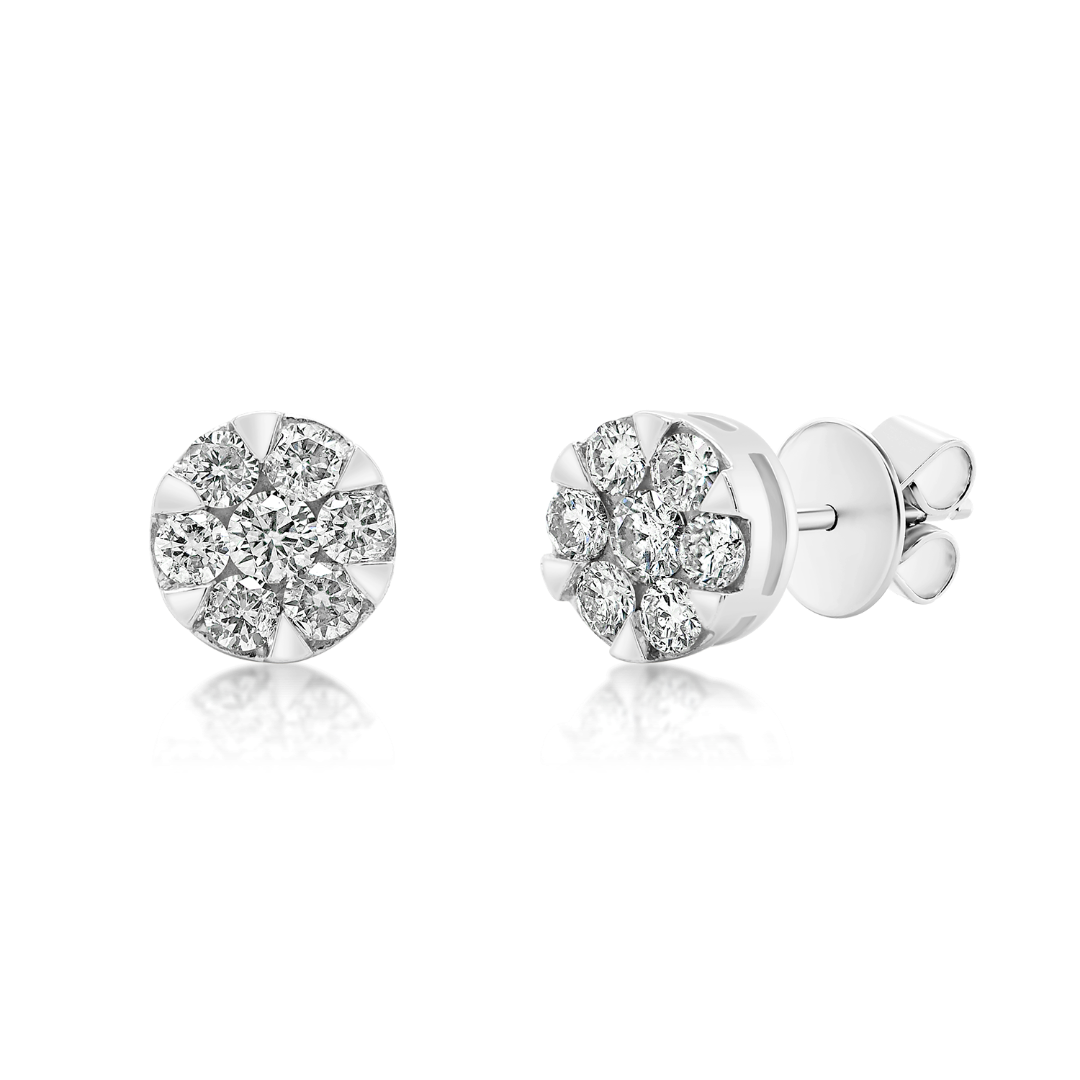 Cercei din aur alb de 18K încrustați cu 14 Diamante naturale Round Brilliant de 0.466ct.