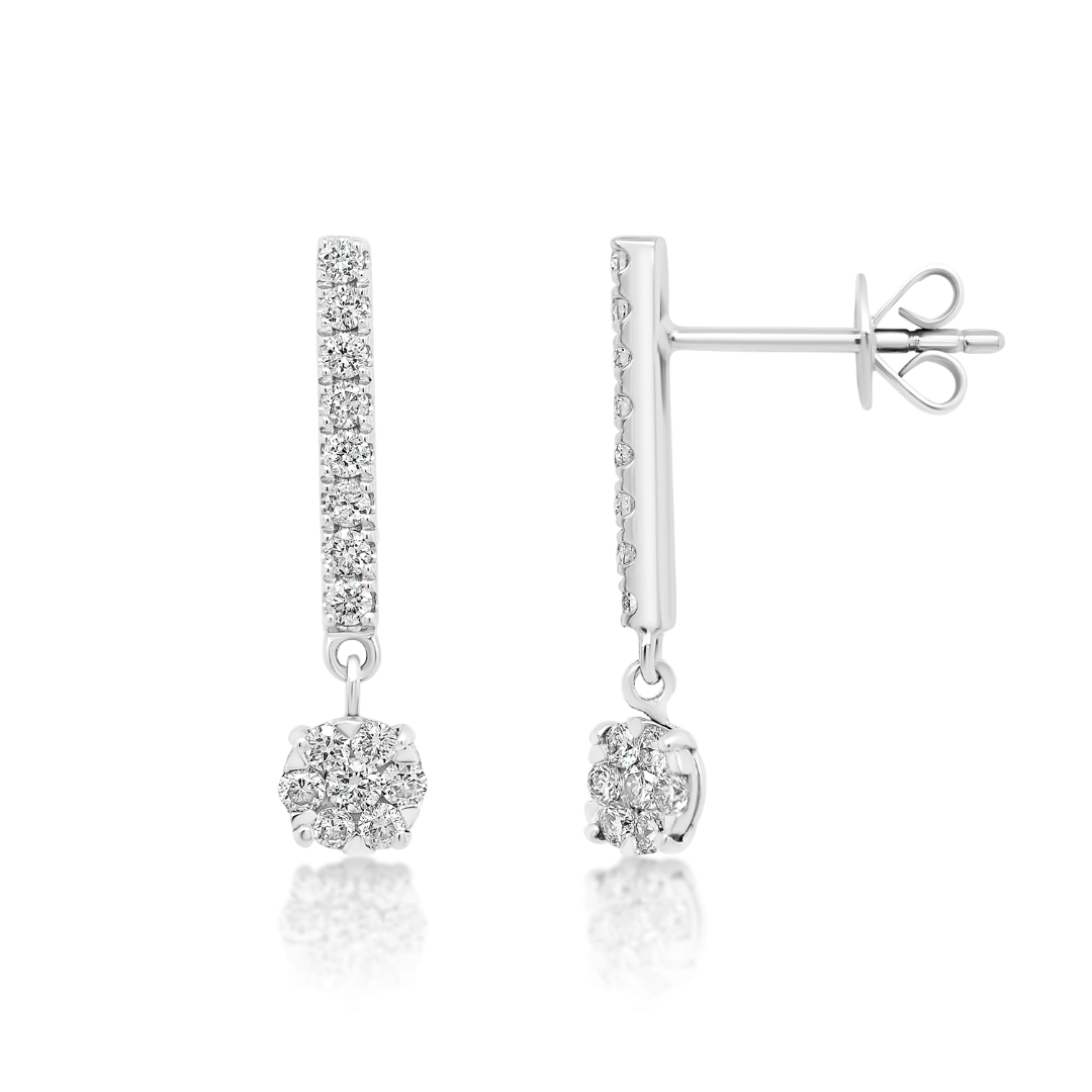 Cercei din aur alb de 18K cu Diamante naturale Round Brilliant