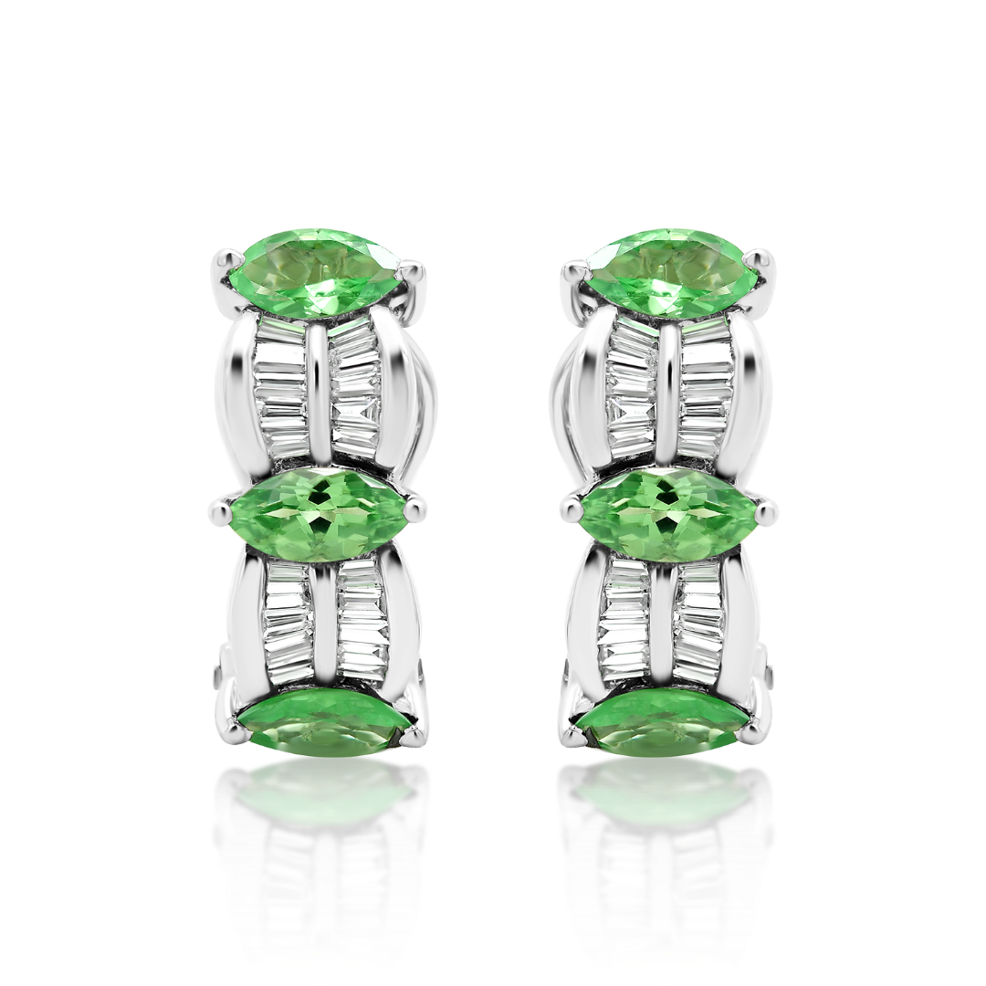 Cercei din aur alb de 18K, cu 20 de Diamante Round Brilliant de 0.52ct și 6 pietre Granat de 1.55ct.