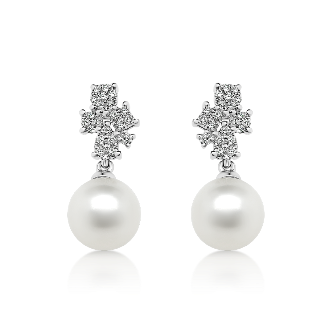 Cercei din aur alb de 18K, cu Diamante și Perle
