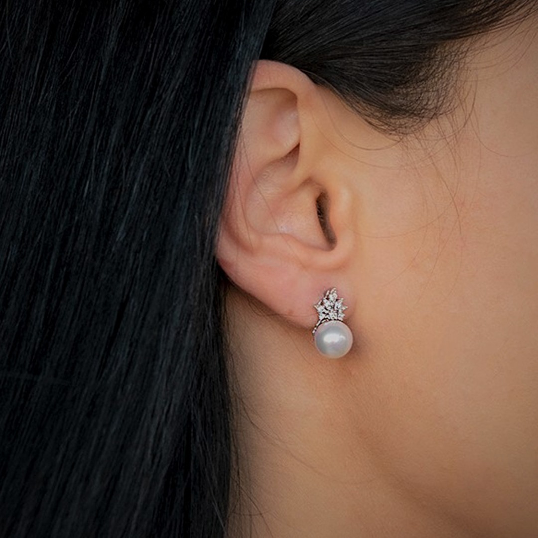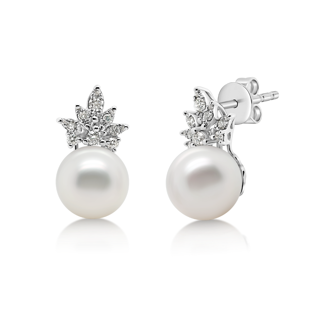 Cercei din aur alb de 18K, cu Perle și Diamante naturale