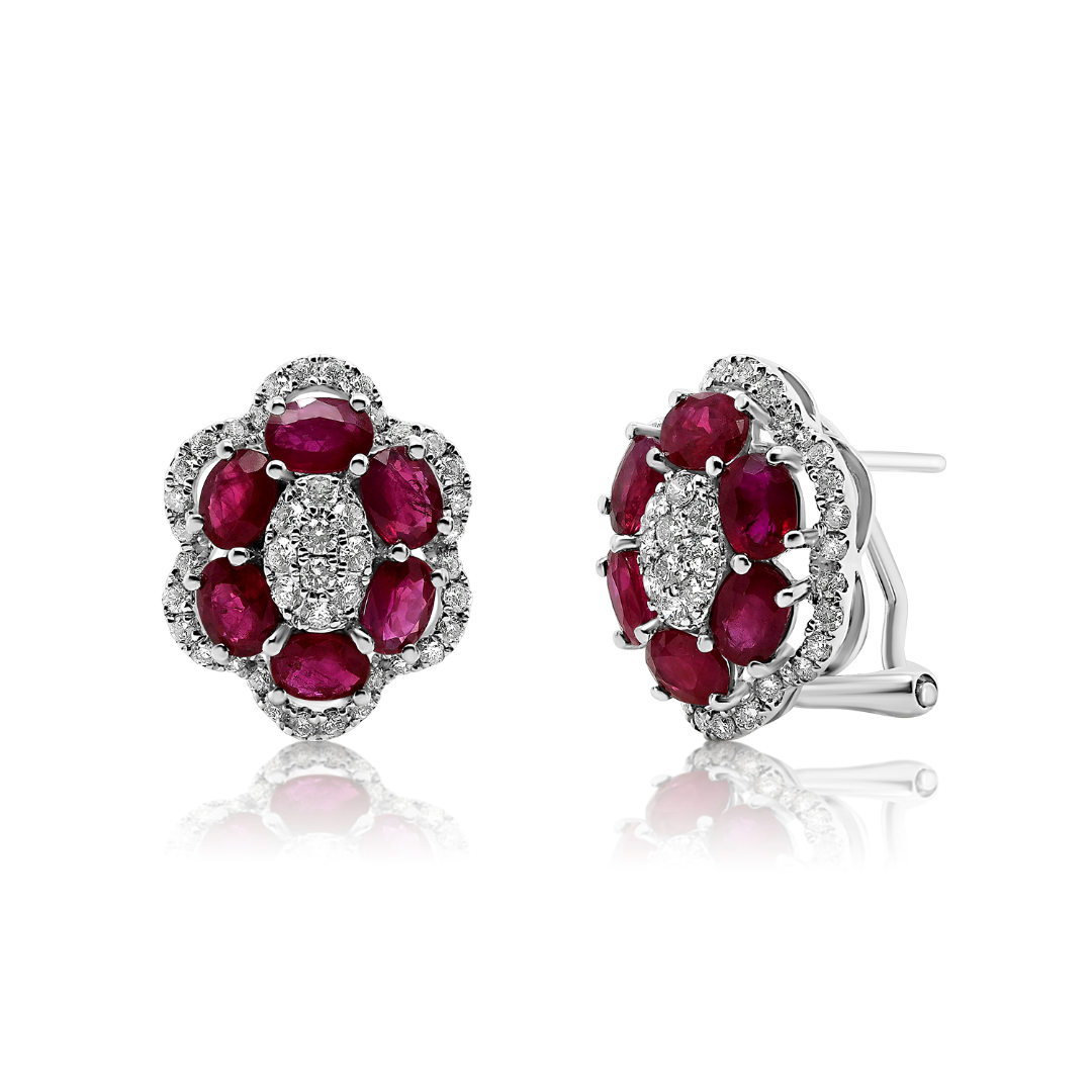 Cercei din aur alb de 18K încrustați cu 84 de Diamante naturale Round Brilliant de 0.61ct. și 12 Rubine cu o greutate totală de 2.36ct.