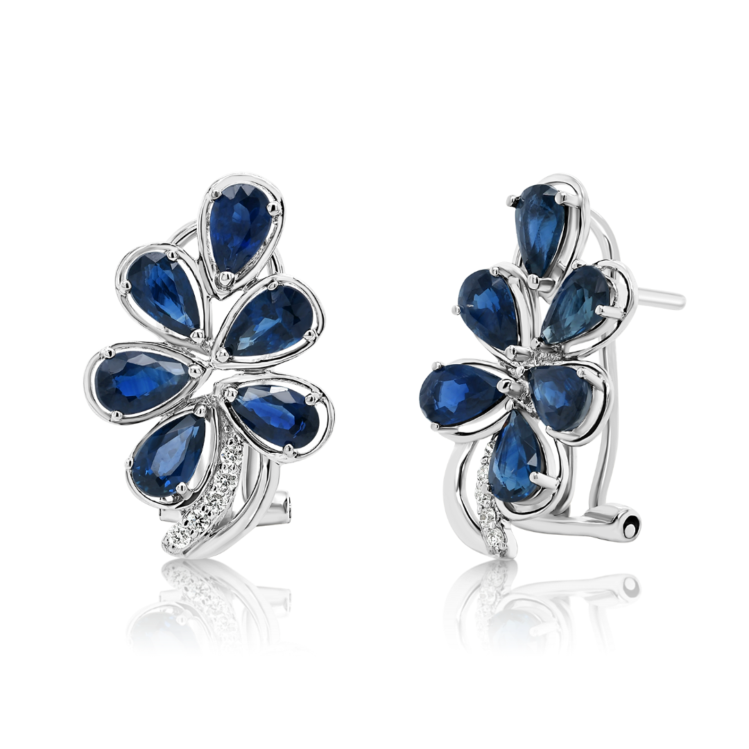 Cercei din aur alb de 18K cu Safire albastre și Diamante naturale