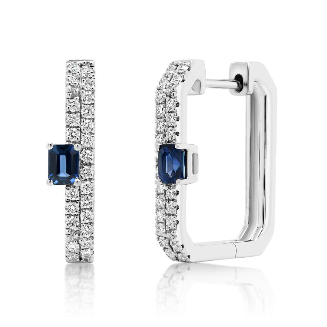 Cercei din aur alb de 18K cu 48 de Diamante naturale Round Brilliant de 0.37ct și 2 Safire albastre de 0.46ct.
