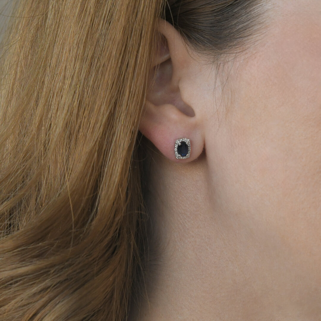 Cercei din aur alb de 18K cu Safire albastre și Diamante, naturale