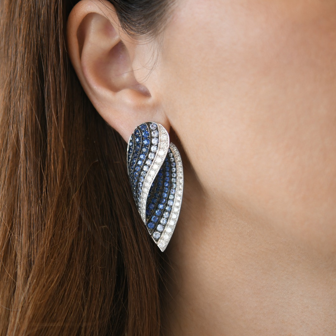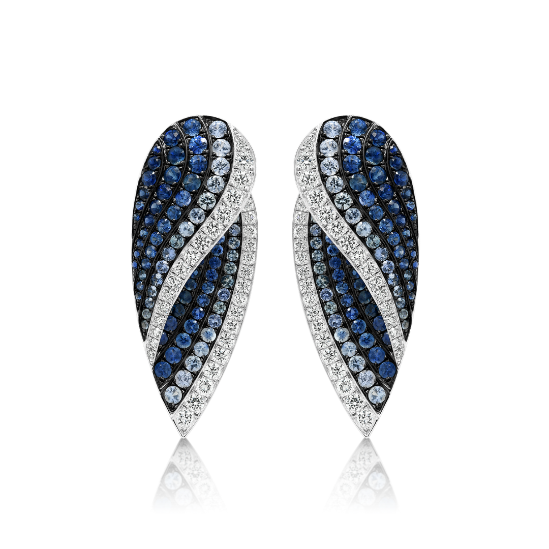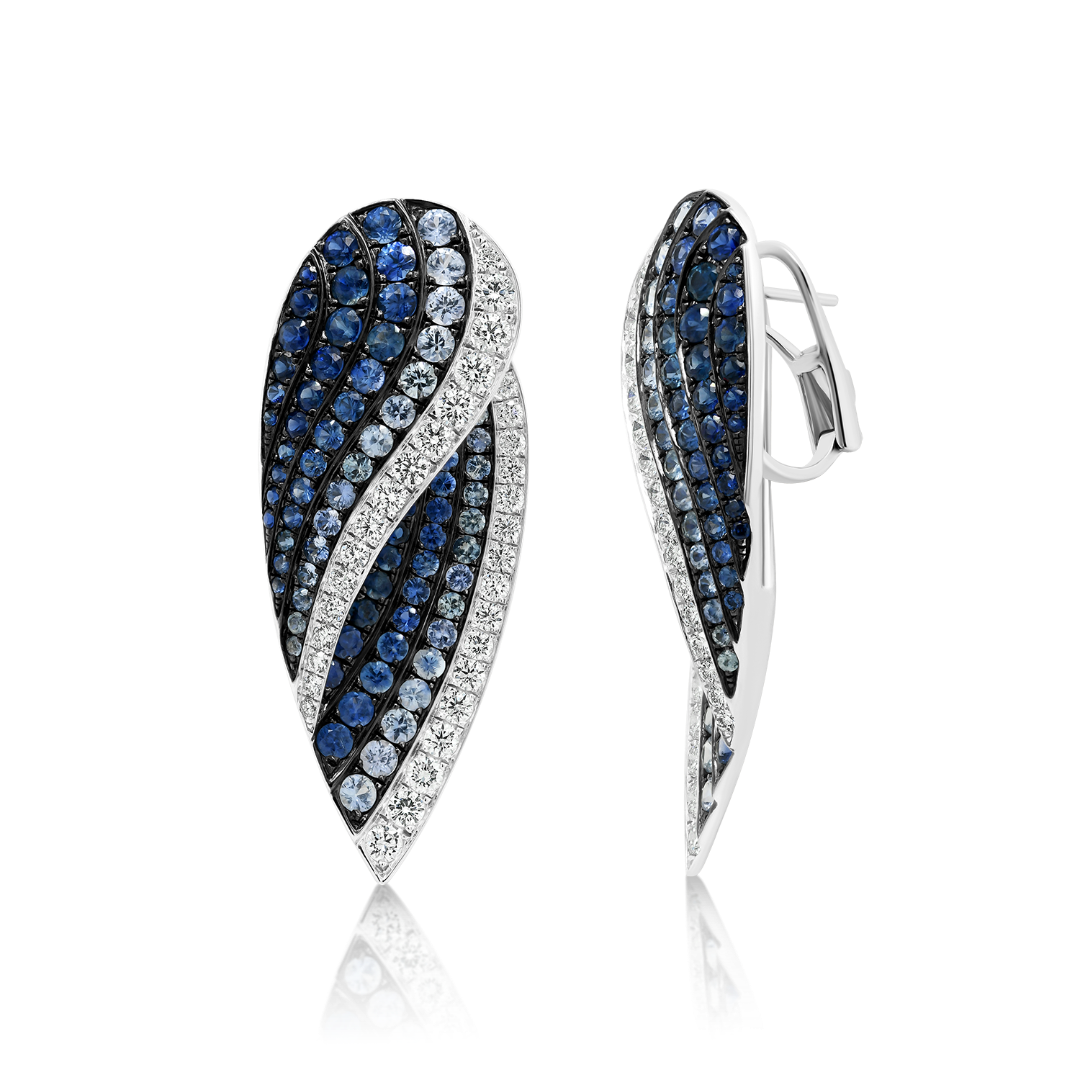 Cercei din aur alb de 18K, încrustați cu 174 de Safire albastre și 68 de Diamante Brilliant cut de 2.65ct.