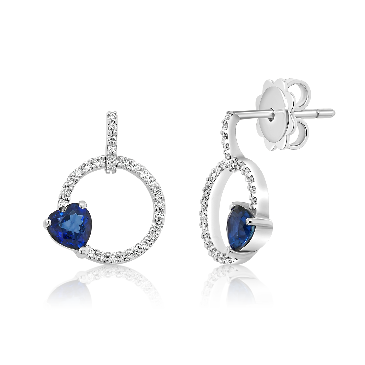 Cercei din aur alb de 18K cu Safire și Diamante naturale