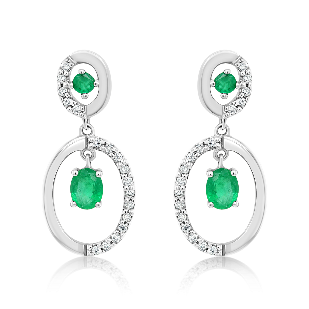 Cercei din aur alb de 18K, cu Smaralde și Diamante naturale