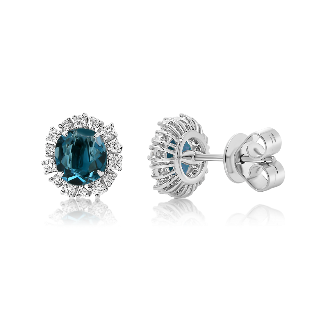 Cercei din aur alb de 18K, cu London Blue Topaz de 1.68ct și 28 de Diamante Round Brilliant de 0.295ct.
