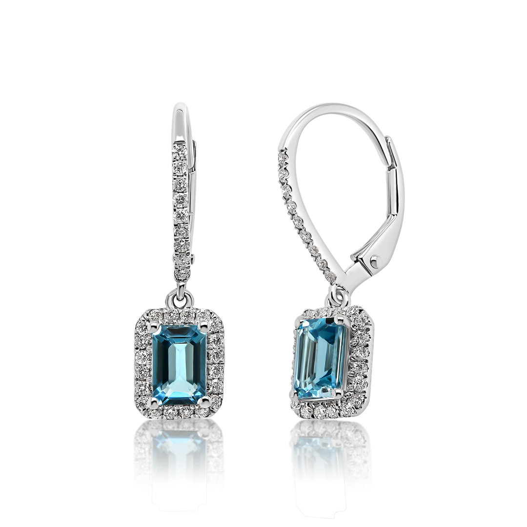 Cercei din aur alb de 18K, cu London Blue Topaz de 1.28ct și 58 de Diamante Round Brilliant de 0.336ct.