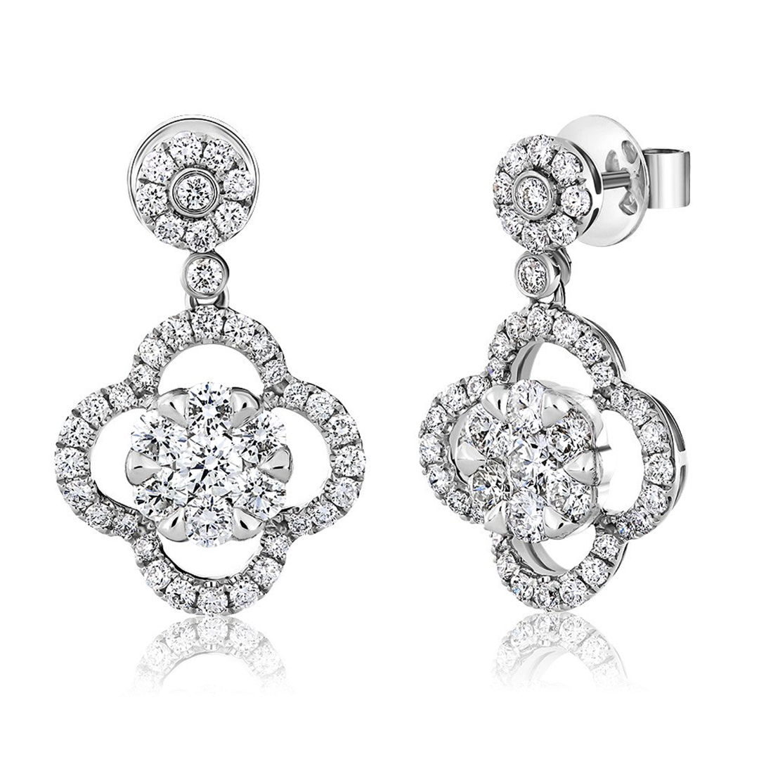 Cercei din aur alb de 18K încrustați cu 90 de Diamante naturale Round Brilliant de 1.64ct.
