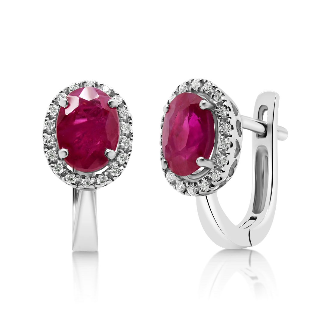 Cercei din aur alb de 18K cu Rubine și Diamante naturale