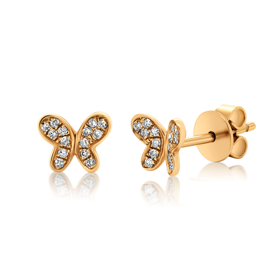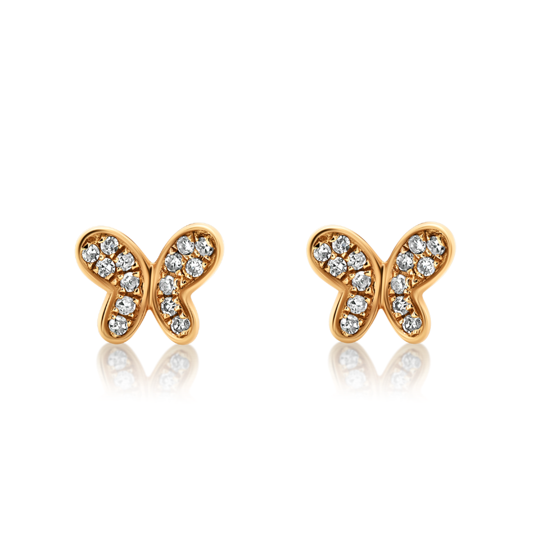 Cercei în formă de fluturi din aur roz de 18K, cu 28 de Diamante Round Brilliant de 0.07ct.