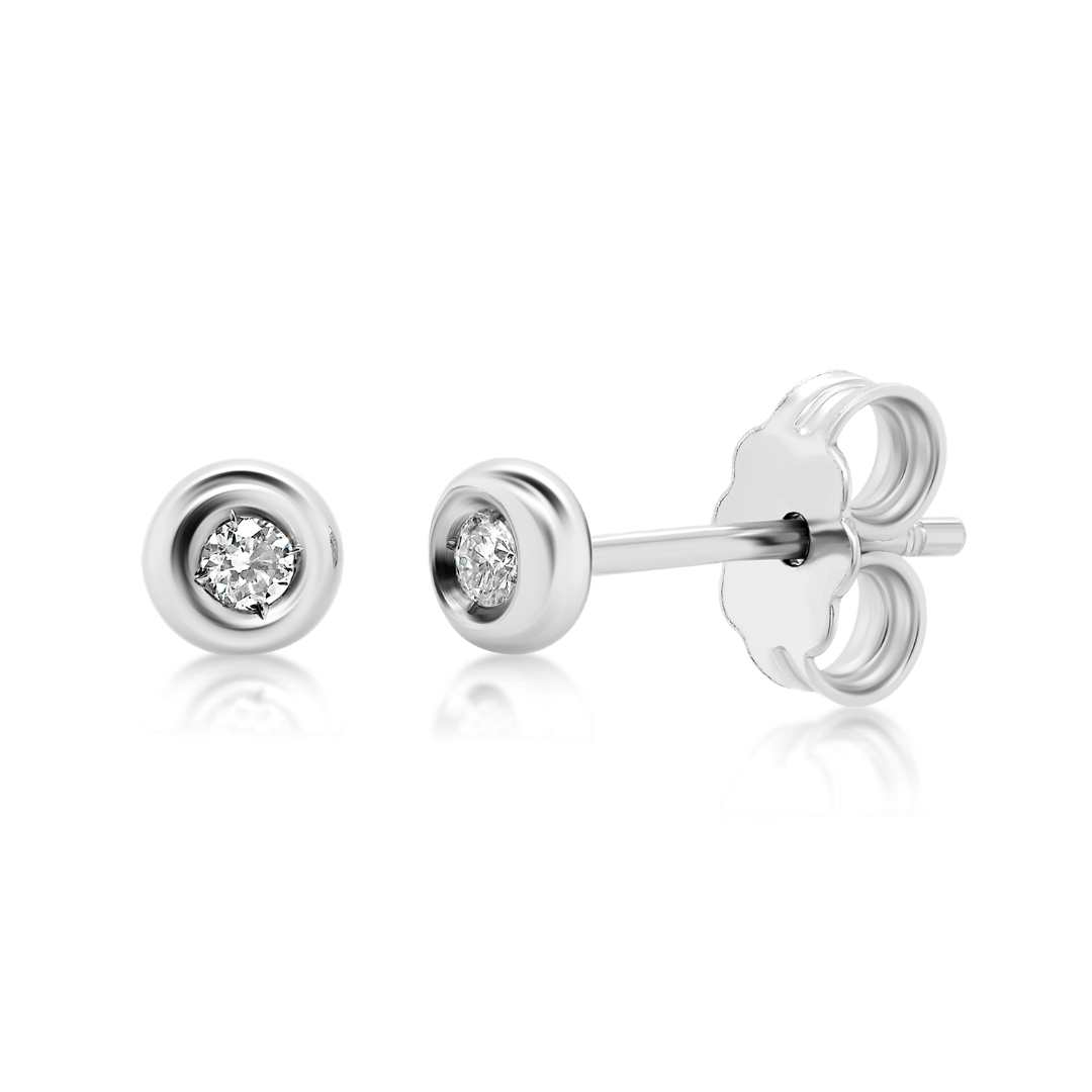 Cercei din aur alb de 18K cu două Diamante naturale Round Brilliant de 0.04ct.