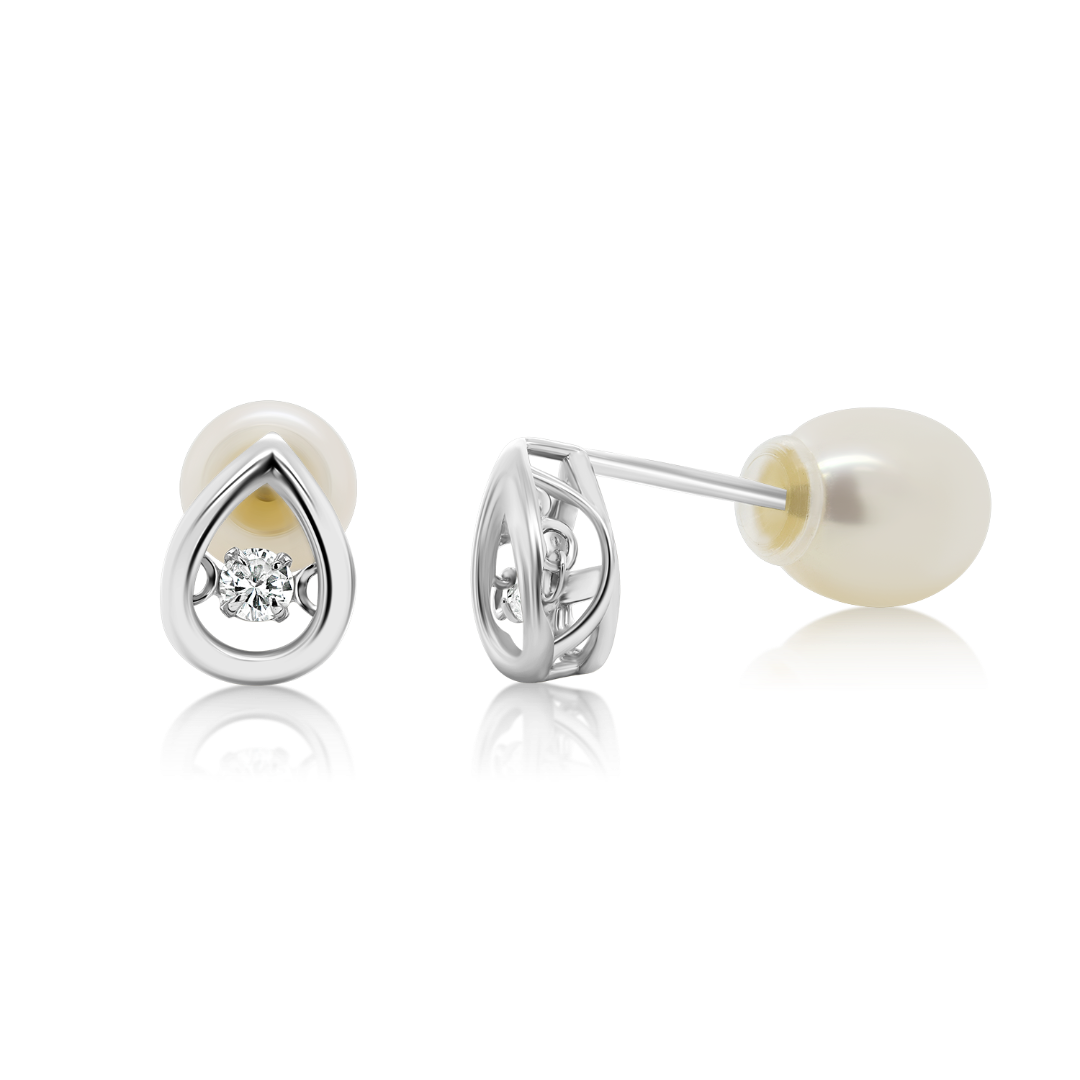 Cercei din aur alb de 18K, cu Diamante și Perle.