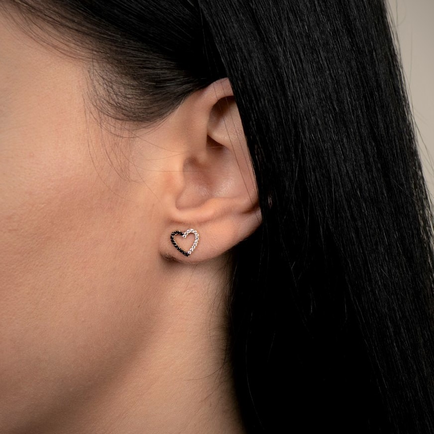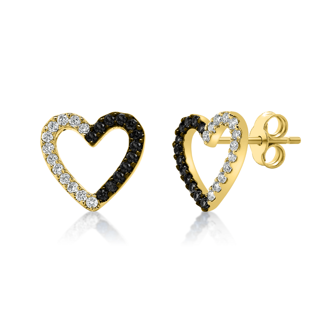 Cercei în formă de inimă din aur galben de 18K cu Diamante negre și incolore.