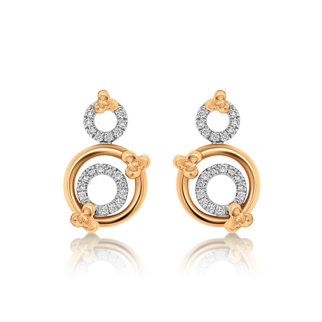 Cercei din aur roz de 18K, cu elemente din aur alb încrustați cu Diamante naturale.
