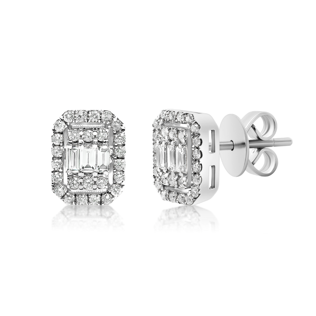Cercei din aur alb de 18K cu Diamante naturale baguette și brilliant cut.