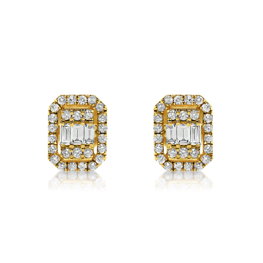 Cercei din aur galben de 18K cu Diamante naturale Baguette și Round Brilliant.