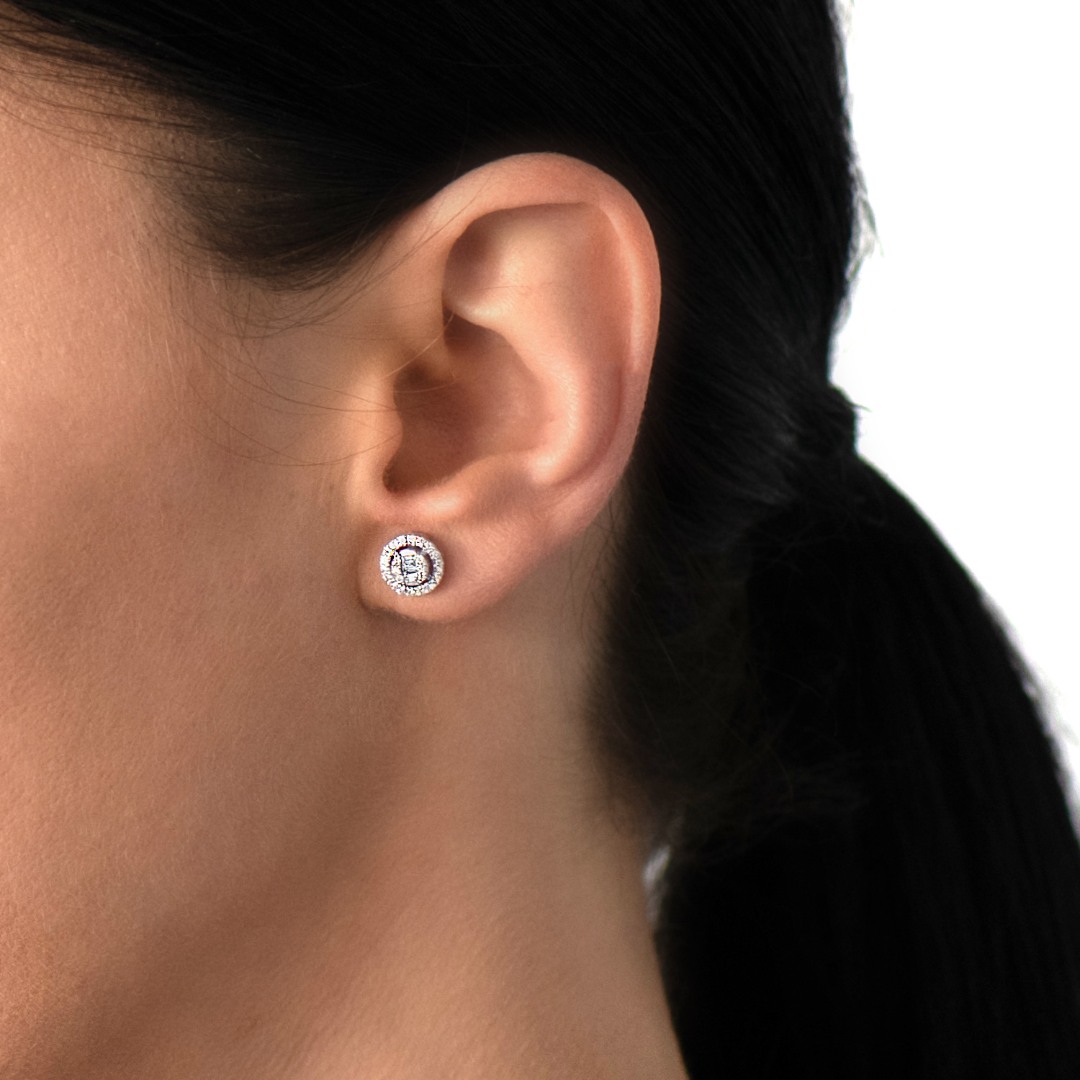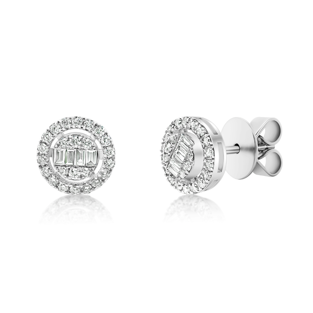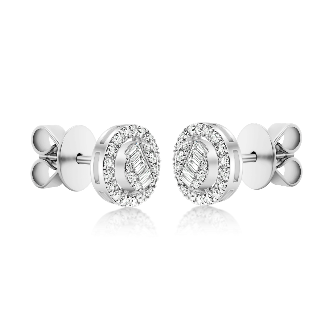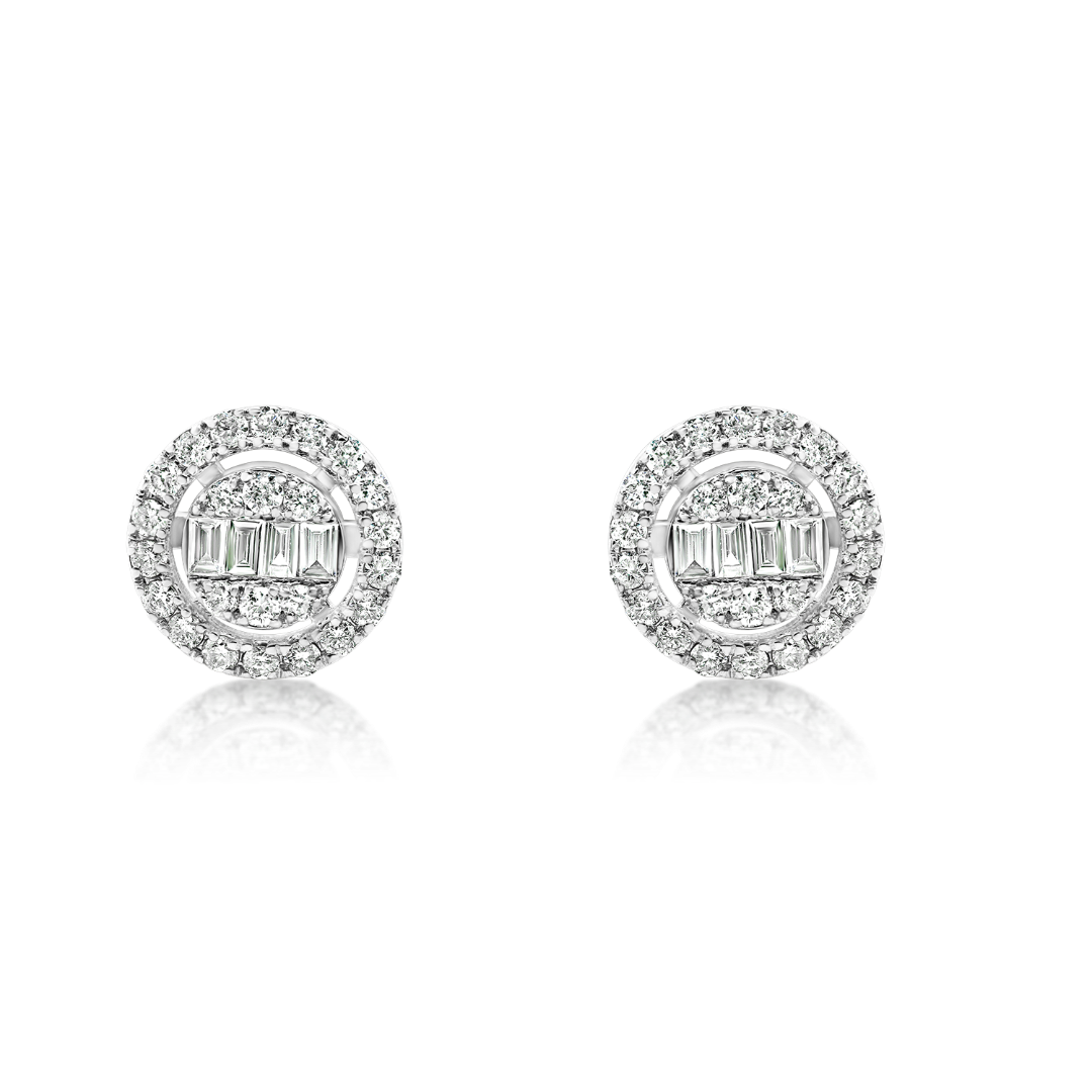 Cercei din aur alb de 18K, cu 8 Diamante Baguette cut de 0.13ct. și 48 Diamante Round Brilliant cut de 0.28ct.