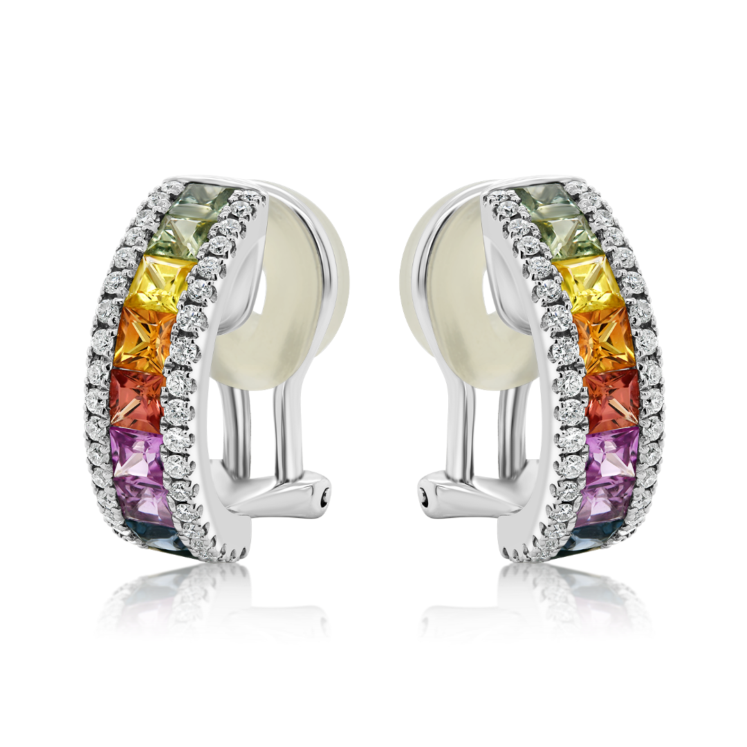 Cercei rainbow din aur alb de 18K, cu Diamante de 0.35ct.