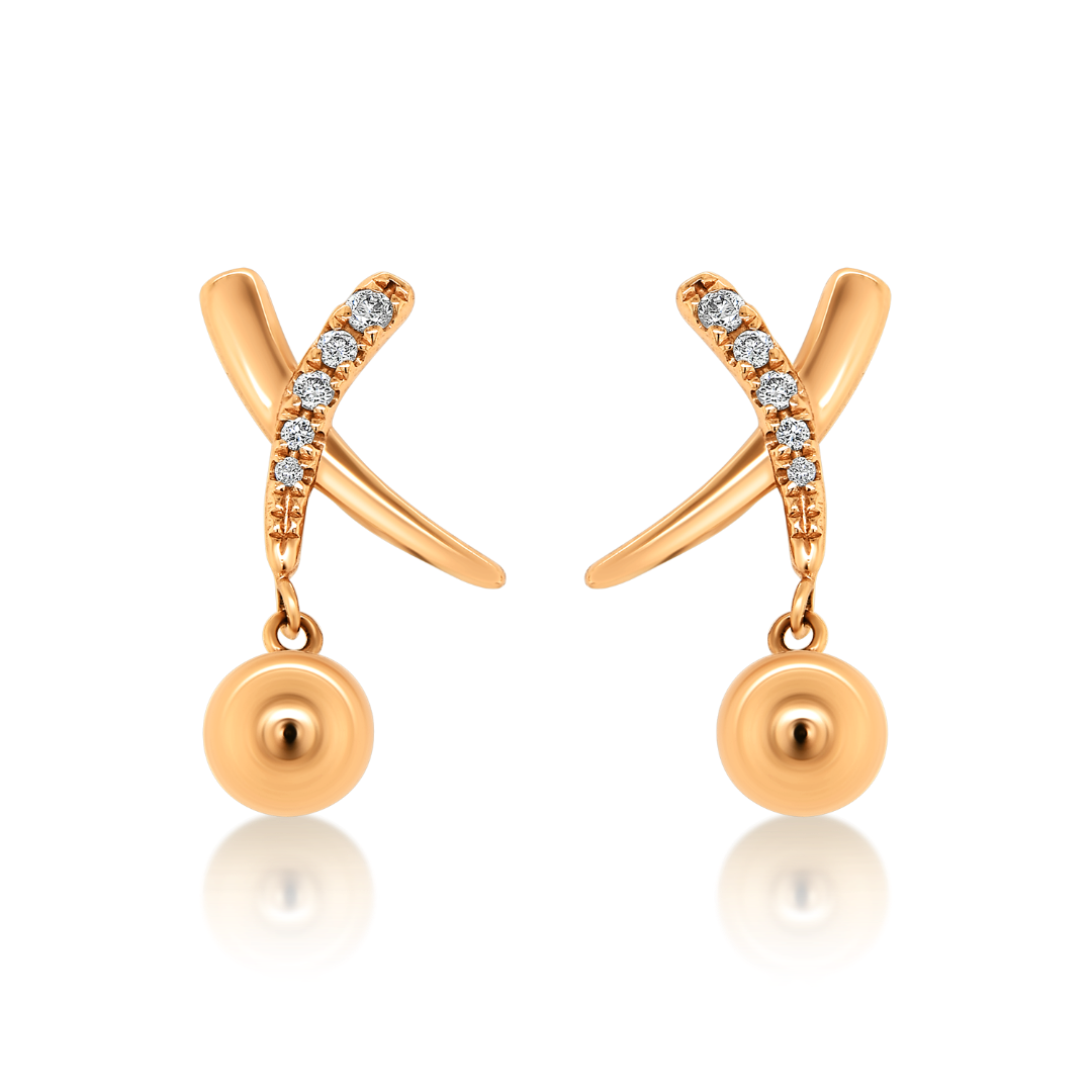 Cercei din aur roz de 18K, cu Diamante de 0.05ct. și biluțe.