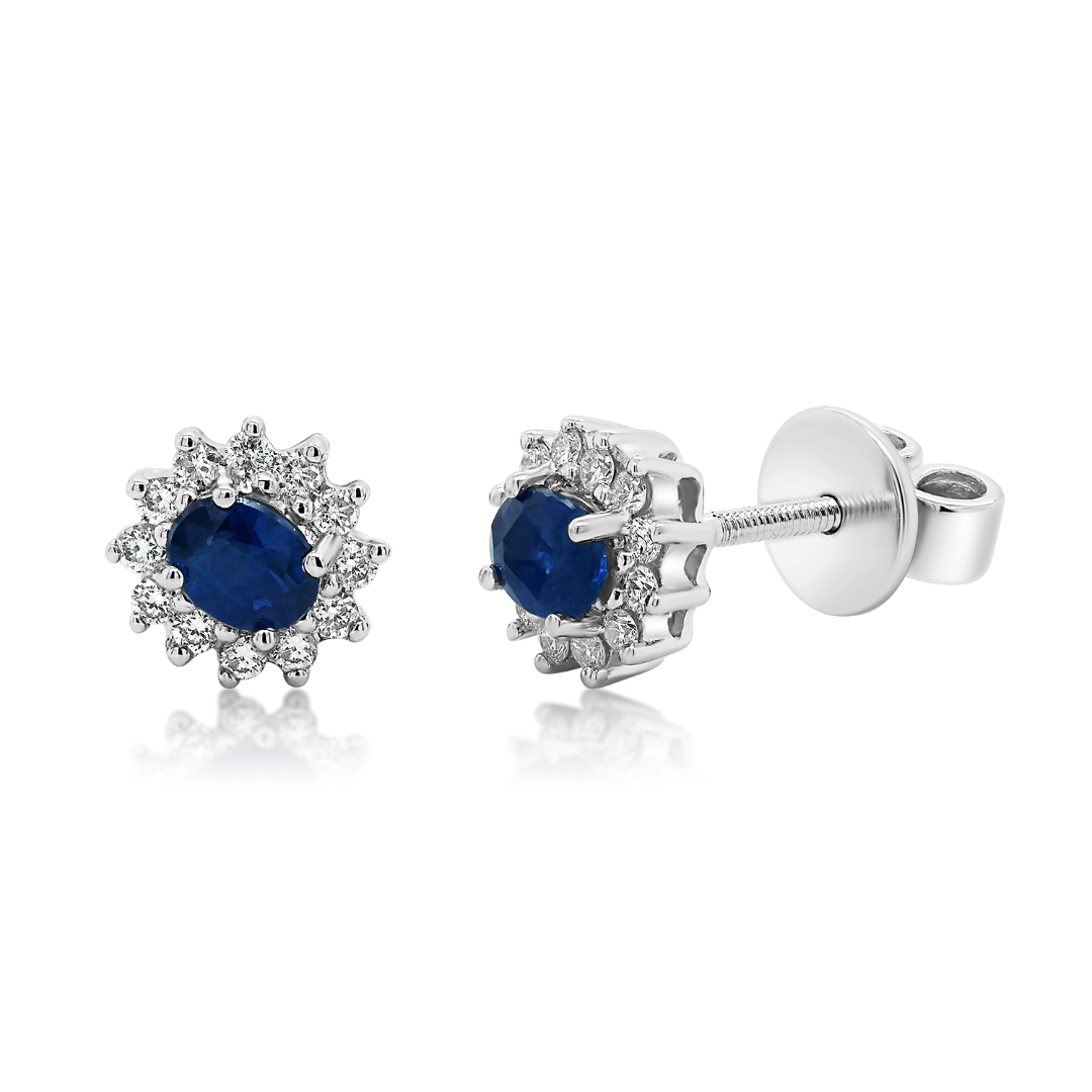 Cercei din aur alb de 18K cu Safire și Diamante naturale
