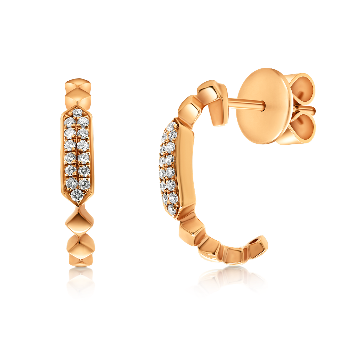 Cercei din aur roz de 18K, cu Diamante 0.11ct.