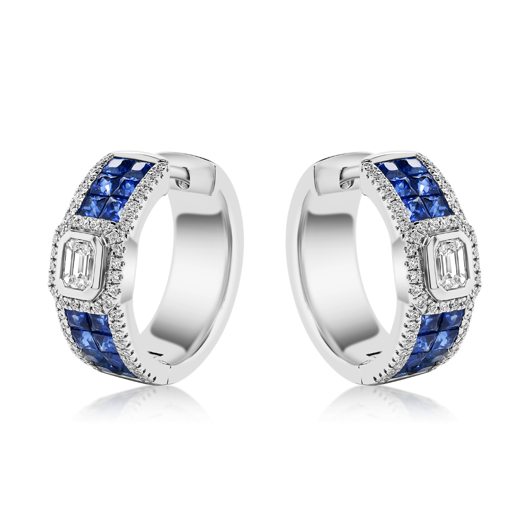 Cercei din aur alb de 14K încrustați cu 114 Diamante naturale de 0.46ct si 28 Safire albastre de 1.38ct.