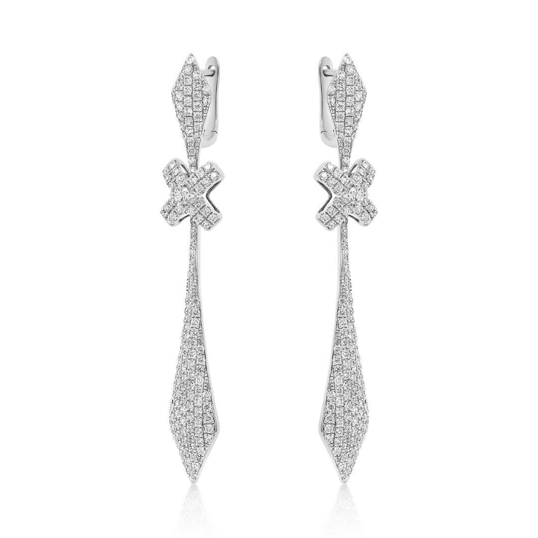Cercei din aur alb de 18K, încrustați cu Diamante naturale Round Brilliant cu o greutate totală de 1.23ct.