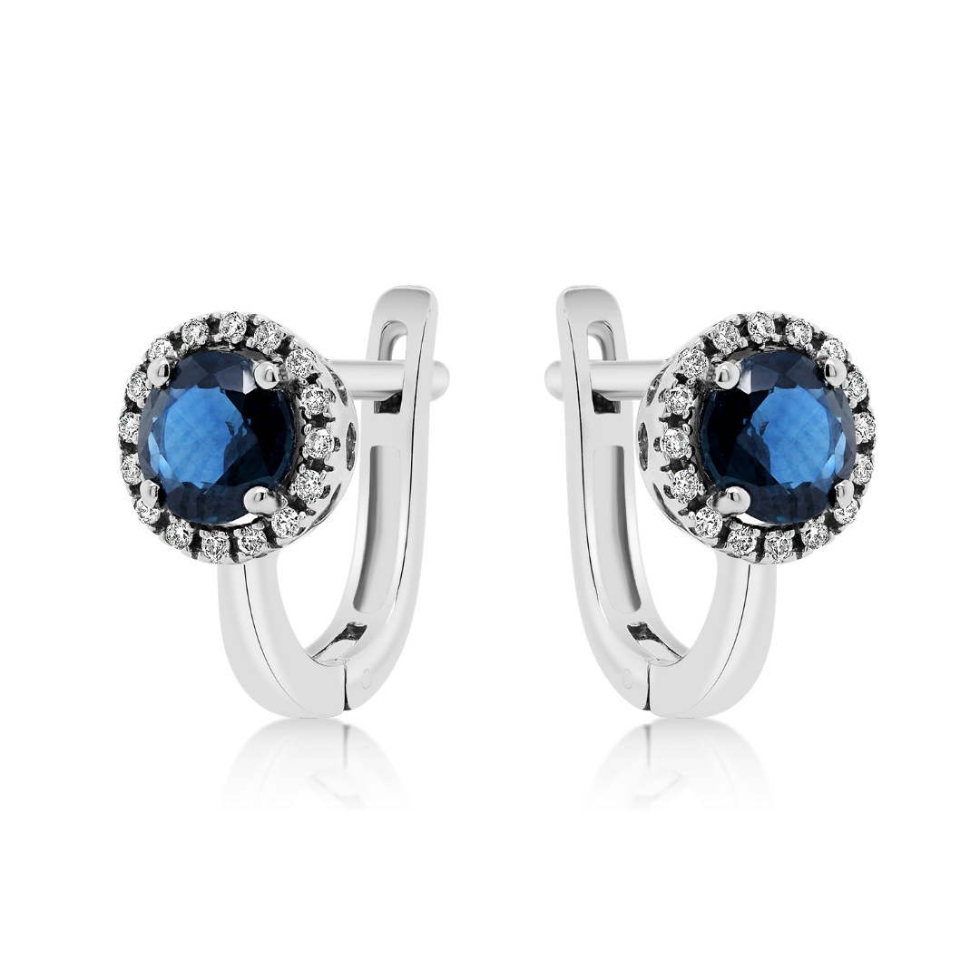 Cercei din aur alb de 18K cu Diamante și Safire albastre