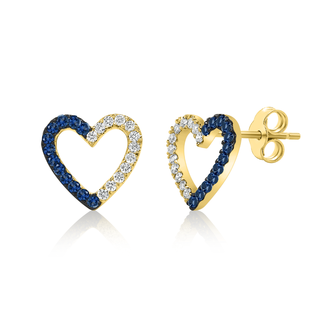 Cercei în formă de inimă din aur galben de 18K cu Safire și Diamante naturale.