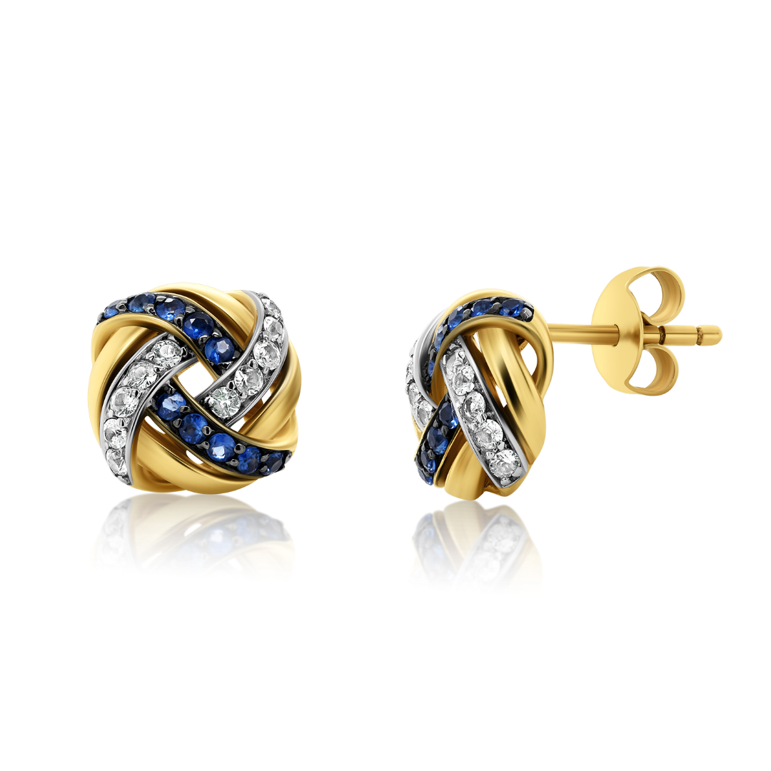 Cercei cu model împletit din aur galben de 14K, cu 20 Safire albe de 0.29ct. și 20 Safire albastre de 0.25ct.