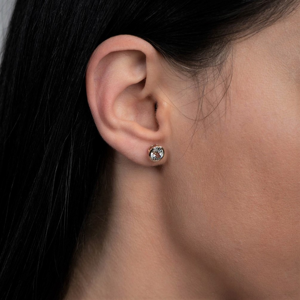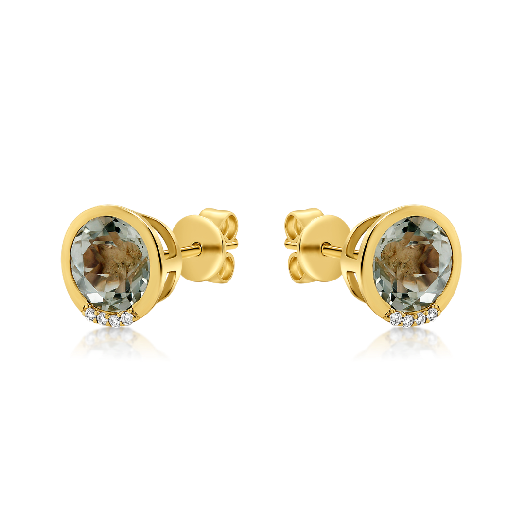 Cercei din aur galben de 14K, cu Diamante de 0.02ct. și Ametist verde de 1.90ct.