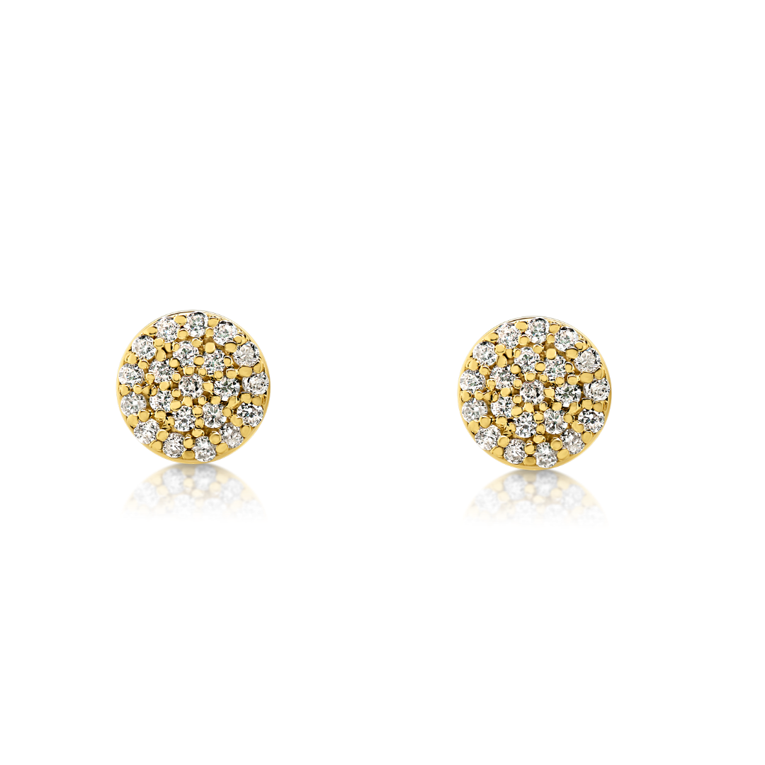 Cercei din aur galben de 18K încrustați cu Diamante naturale Round Brilliant de 0.23ct.